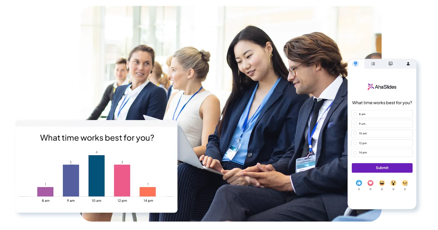 AhaSlides works across all formats. For virtual sessions, participants join from devices regardless of location. For hybrid sessions, both in-room and remote participants engage equally through their phones or laptops—no one is left out.