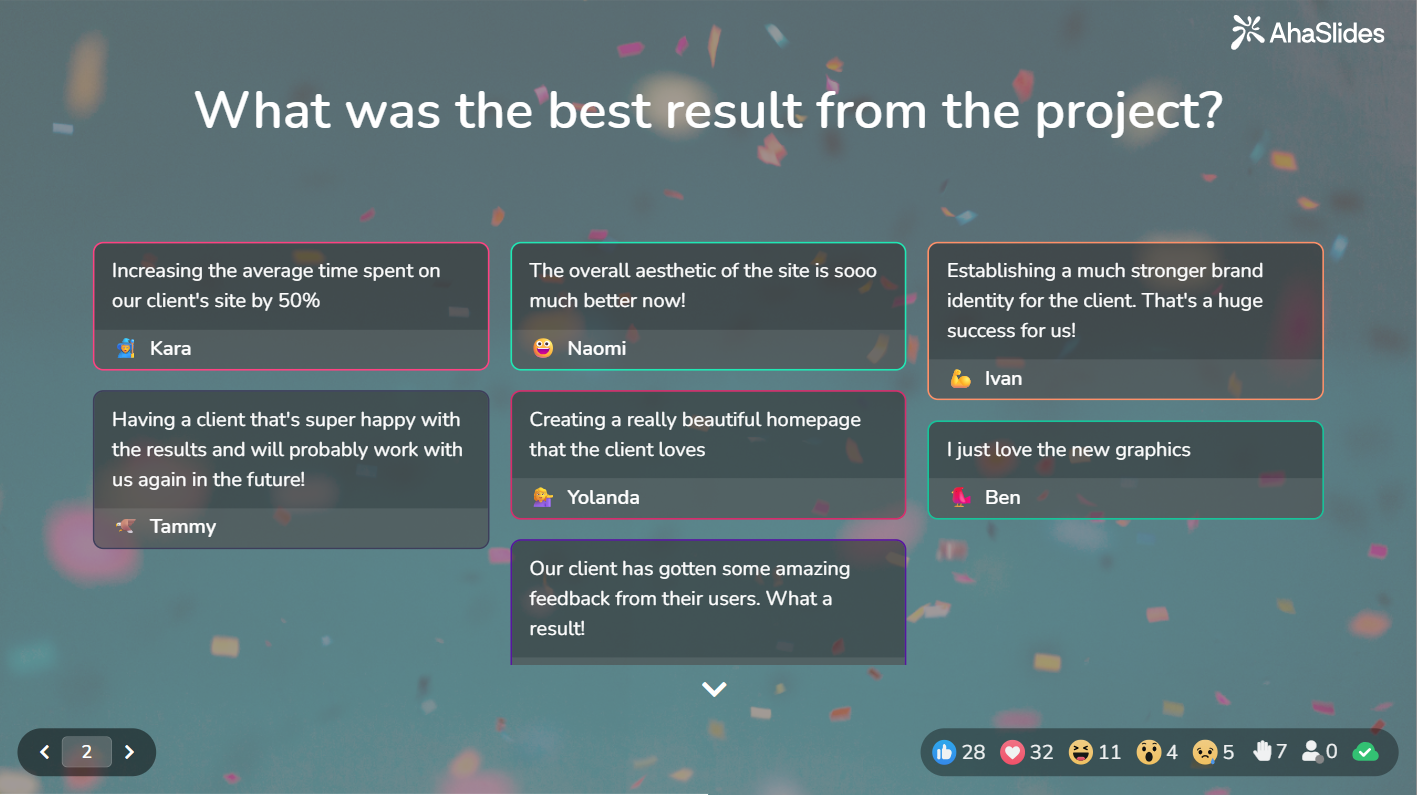 Os seis métodos acima funcionam manualmente, mas exigem constantes manobras de facilitação. O AhaSlides foi desenvolvido especificamente para tornar as reuniões online interativas mais fáceis e sem atritos no Zoom e no Microsoft Teams.